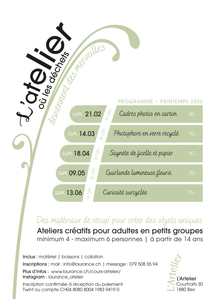 Les ateliers – printemps 2026 :